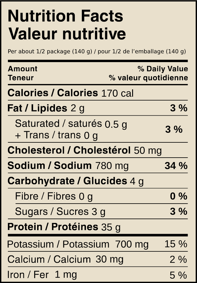 Veuillez consulter l’emballage pour obtenir les renseignements les plus précis et les plus à jour sur les ingrédients.
