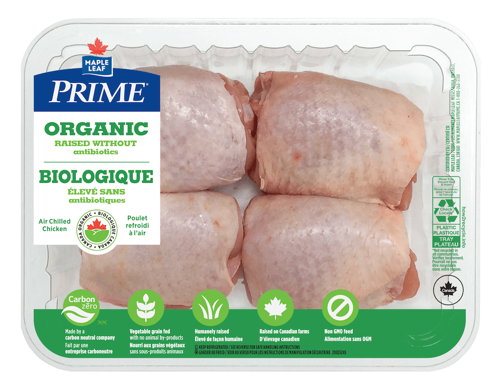 All store-bought chicken is technically “antibiotic free” because all antibiotics must clear an animal’s system before it gets processsed, even if they were once treated. That’s where Maple Leaf Prime® Raised without Antibiotics and Organic products assure Canadians that the chicken they feed their family is truely raised without antibiotics.