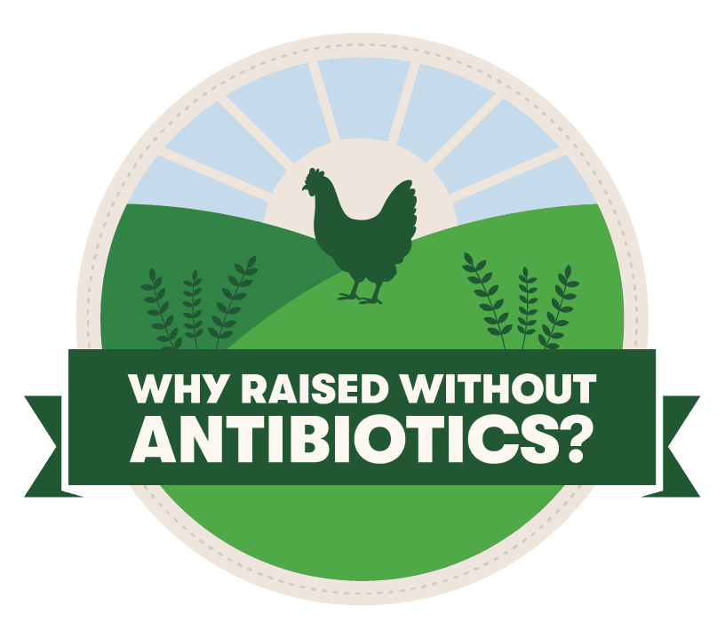 Why Raised Without Antibiotics logo badge